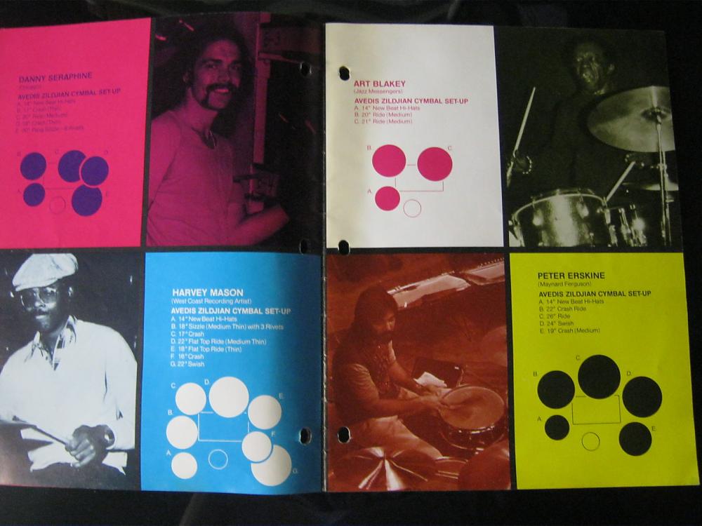 I have this zildjian cymbal set -ups catalog from the 60's/70's and i tought some of you would like to see a few pic's from it . i'm not sure the exact year of this catalog . and it's really cool to see some of our hero's back in the day with theire cymbal set up's . and it's strange to see that most of these guy's were playing sonor i tought for sure it would have been ludwig .