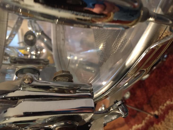 Deflated, I continued setting up the set, and the snare makes a ‘pop’ sound as I am setting it on the stand. A short crack coming from the strainer!
