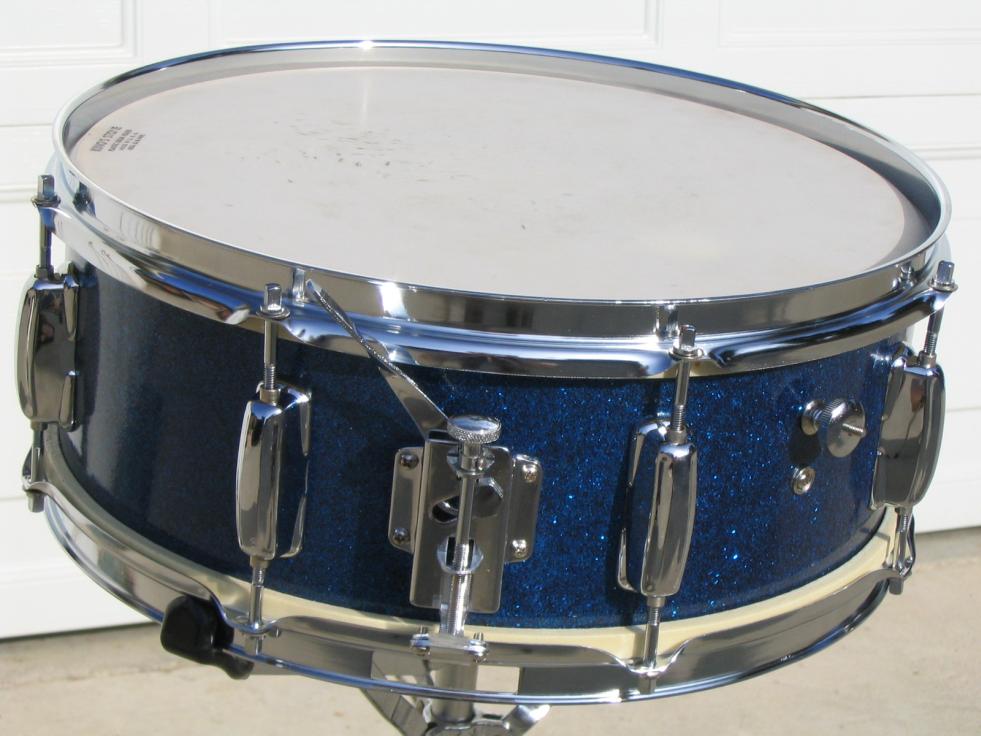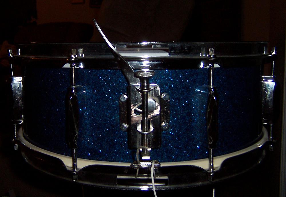 Hey Mark. This blue one is the same shell as this pretty little one you just picked up. I sanded some snare beds in it and lacquered it and it sounds amazing. Not at all like a MIJ snare. More like an American. The strainer has a cosmetic hickey on the face, but the chrome doesn't count toward pure sound. I only wish I could find one of these sweet little strainers in really good condition, but then, I sometimes prefer some bruises to a pristine showpiece.