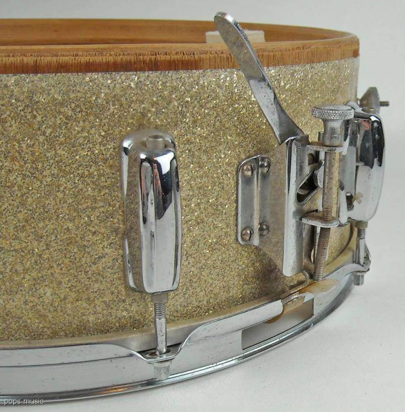 Hey Jonnistix! Yep, I thought the same about these strainers as well. Check out two of my snare drums with the same strainer. The difference is that the lever on the actual Rogers strainer bends the opposite way from the MIJ copy. The Blue Sparkle is an Apollo, which I've since sold. All original down to the King's Stone batter head! The silver sparkle Mitchel drum has already had the strainer cleaned, polished and the tension adjustment rod straightened. Oh yeah, this is the drum awaiting an air vent grommet!! No pressure of course! I also have a third snare drum, which is a Lyra in Oyster Blue, which was missing the same strainer. I found an actual Rogers strainer for it on eBay! Still need to put the Lyra together. Pics will be posted when done.