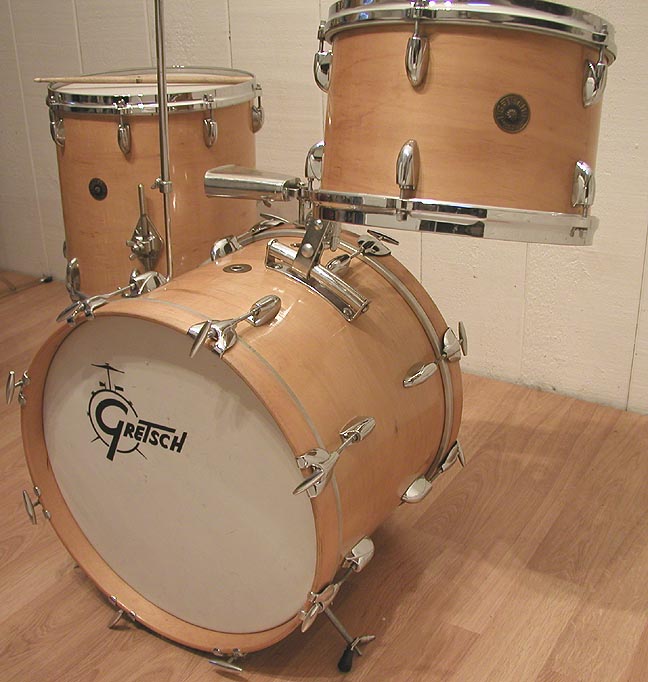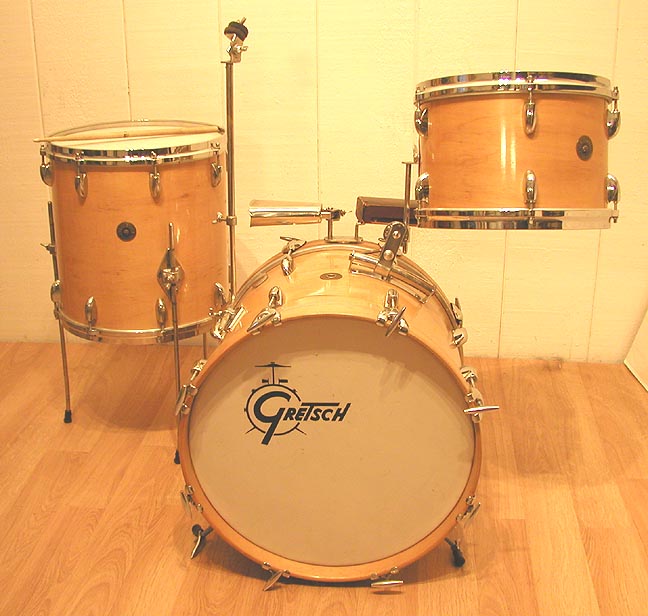 By the way, I've never seen an original Gretsch RB set in natural maple. Not one single set. I'm sure there's one out there somewhere, I've just never seen or heard of it. I'm talking all original, no weirdness, no tampering, silver interiors with paper tags, and photographic proof of unaltered badge tacks. There are single maple RB drums floating around that the owners claim to be original, but no sets.
