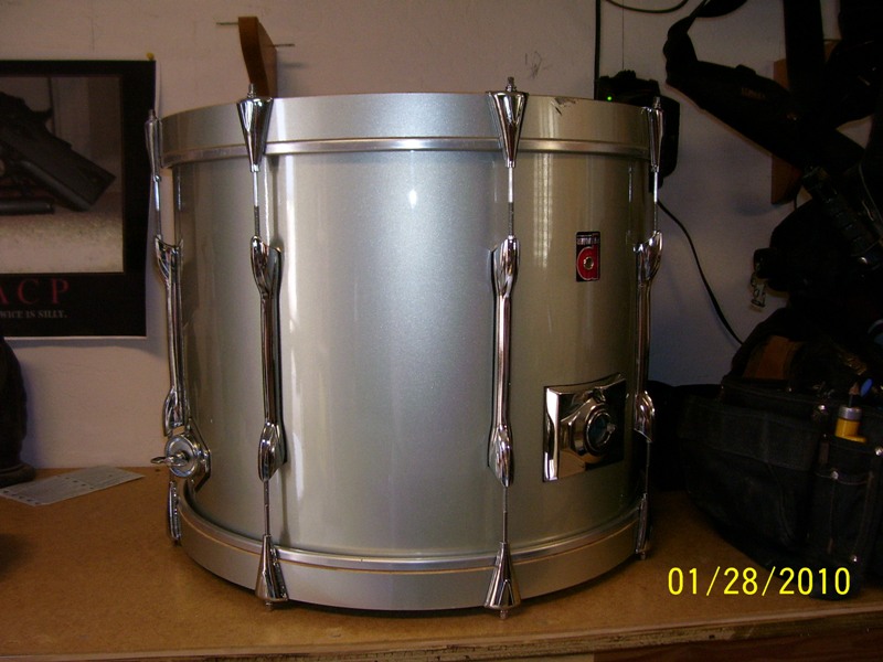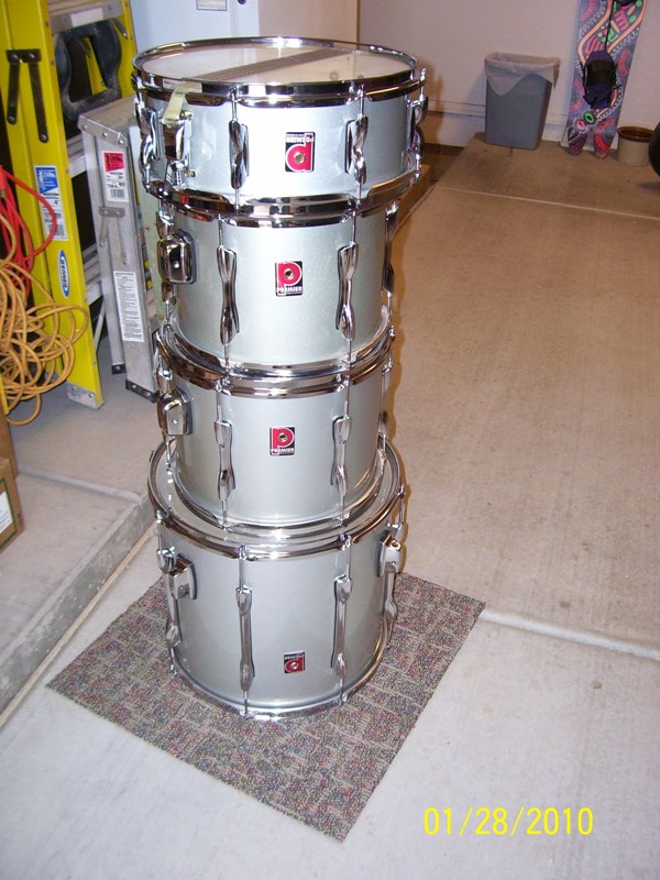 I did do some research and saw a picture of a set similar to mine. Same exact lugs and badges, I believe they were called "Projectors". What really made me think mine may be projectors wasn't the Badges or lugs matching, but the shell of the bass. The Projector shells were 3 layers of Birch and 3 Layers of Germen Beech wood for the bearing edge. When you look at the edges of mine you can see two differant kinds of wood, dark like Beech wood on the bearing edges and light, like Birch on the inside, and you can see the 3 layers of Birch really well and the 3 layers of German Beech good too. The pics below are the Projector series and a pic of my beveled edge. The tom mount I have looks exactly like the one in the picture.....What do you think? Could I have figured it out?