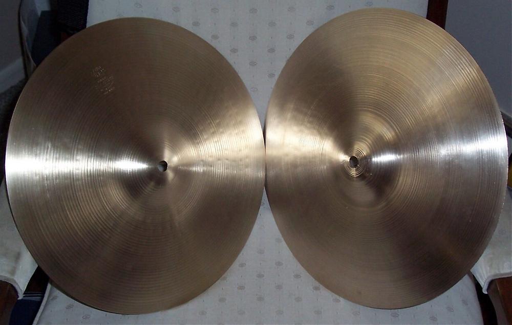 Among those that I want to move is a pair of vintage 14" Avedis Zildjian hi-hat cymbals. I believe that they're from the 60s but I'm not 100% certain, which I need to be. Please take a look at the first four pics that I've attached. Any and all information regarding this pair of hats that you'd like to offer would be greatly appreciated.