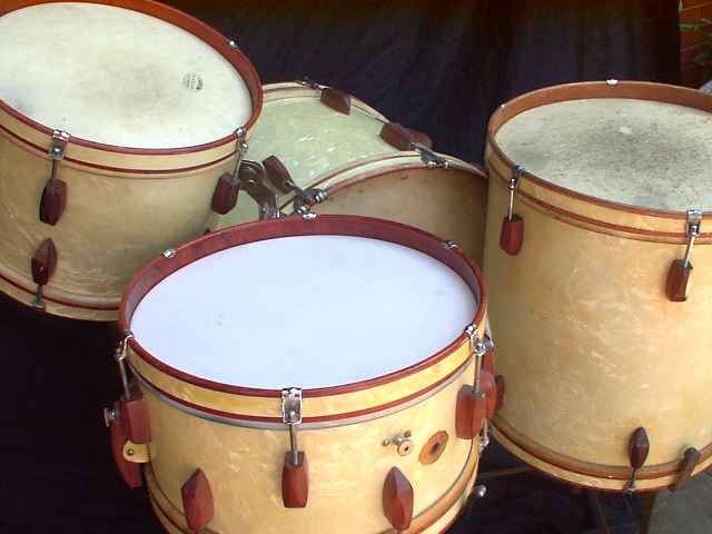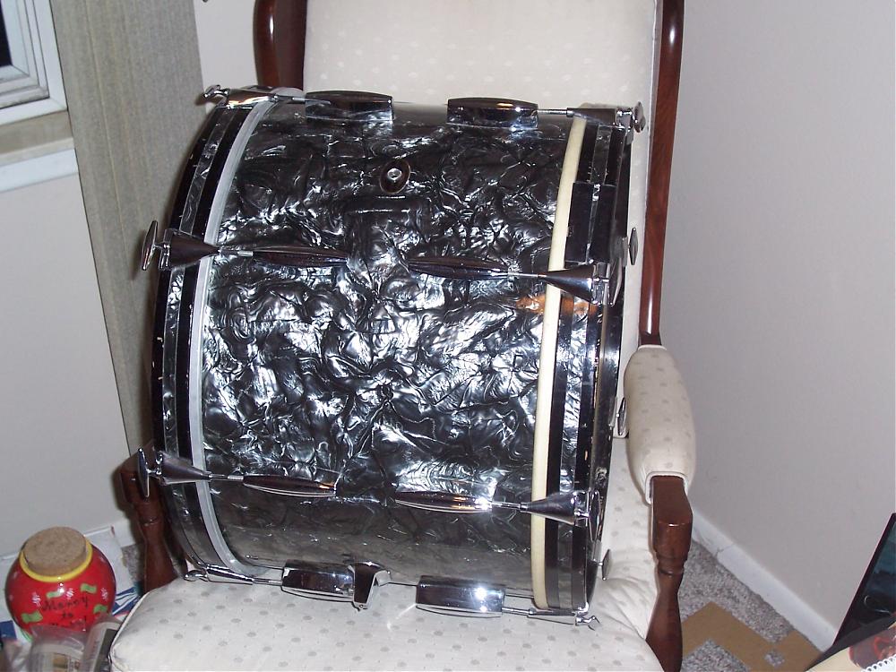 My question concerns the floor tom. This one's got wooden hoops with BDP in-lays, similar to what normally appears on bass drums. Was this common during this era on the Radio King kits, or is it some sort of "special order"?