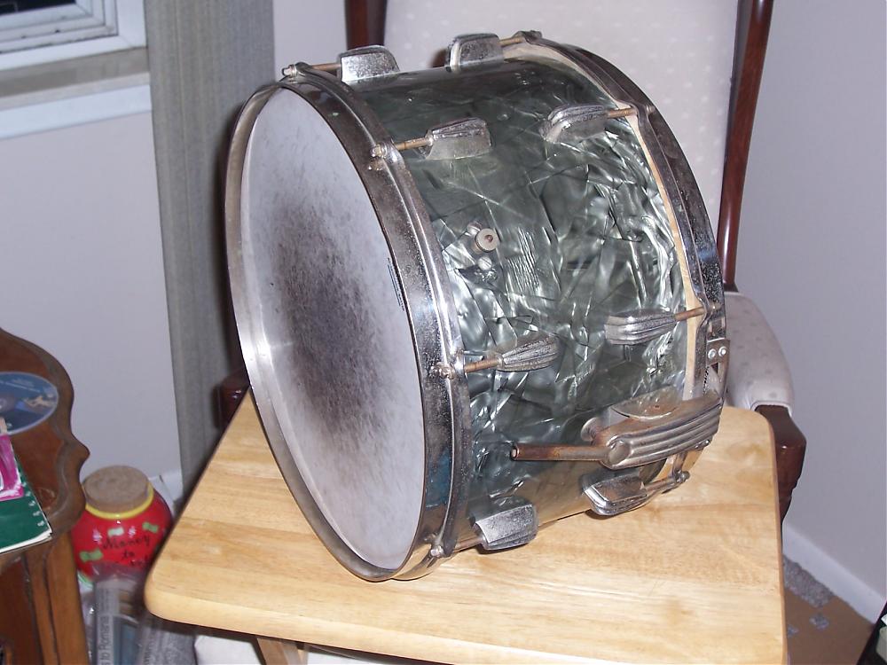 The kit came with a Radio King bass drum, rack tom with tacked bottom, Gene Krupa Super Radio King snare drum (16 lugs) , floor tom with basket and original hi-hat stand with 13 inch "hats". All the drums came with calfskin heads, including some original Radio Kings.