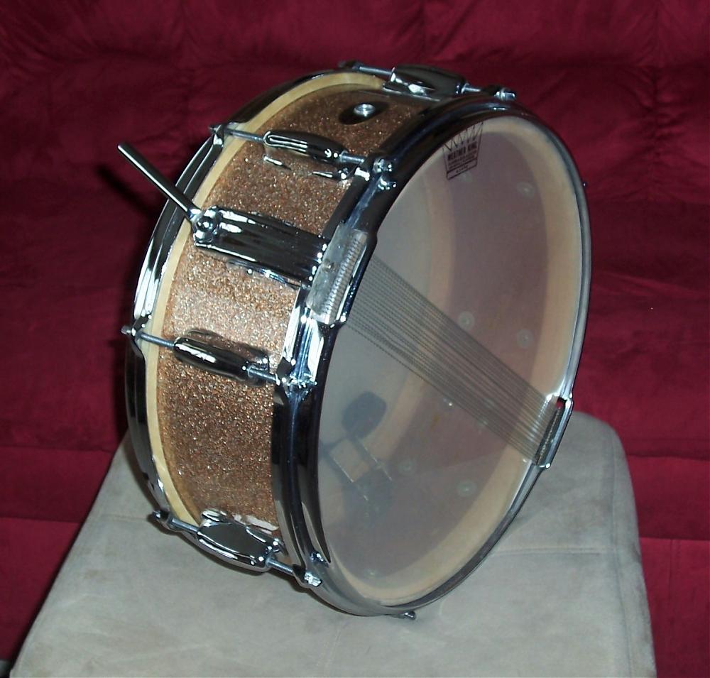 I'm trying to CORRECTLY identify a Slingerland Sparkling Pink Champagne snare drum that I've got for cataloging purposes. I've added a few pics of the drum and a description of some of the features below. ANY AND ALL help regarding this one would be GREATLY appreciated. THANKS in advance for your help!
