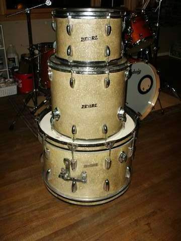 I'm sure this has been addressed here somewhere, but does anyone have any tips? I got my '66 Pearl silver sparkle set from eBay on Friday, and it looks worse than I thought. I'm still glad I got it, it's just that it's gonna take more work than I expected. I want to keep some of the patina, but the wrap is in worse shape than I could see in the photos. I can repair the peeling and splits easy enough, but has anyone had any luck with stains or uneven fading? I don't want to spend the time or money rewrapping them, I'm just hoping to make them a little less ugly. If there was ever a clearcoat on them, it appears to be long gone. I have a really nice paint booth at work, so I thought if I could get them cleaner and smoother, I can shoot a nice coat of gloss or semi-gloss then.