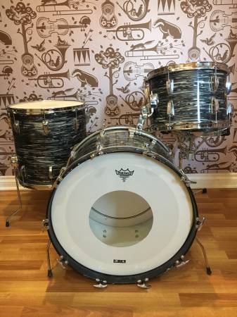 About a month ago, I bought a kit off of craigslist that was advertised to be a Ludwig/Blaemire in black oyster pearl finish. The seller wanted $1,000 for it but I got a better deal since I drove from San Diego to Hollywood where he was located. Anyway, the kit has all 60s Ludwig hardware and is definitely made of fiberglass. The only concern is that the interior shells have been painted white, so there's no definitive way of legitimizing whether it's actually a Blaemire kit. I'm wondering if it's a 70s Pearl fiberglass kit?
