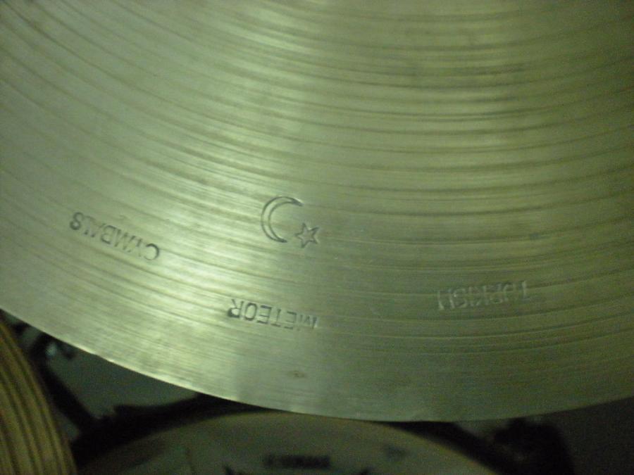 Stamp is Turkish cymbals and between stamp meteor.I know that Meinl had that low budget line for long time,maybe these was one of the first generation?It is 14' crash