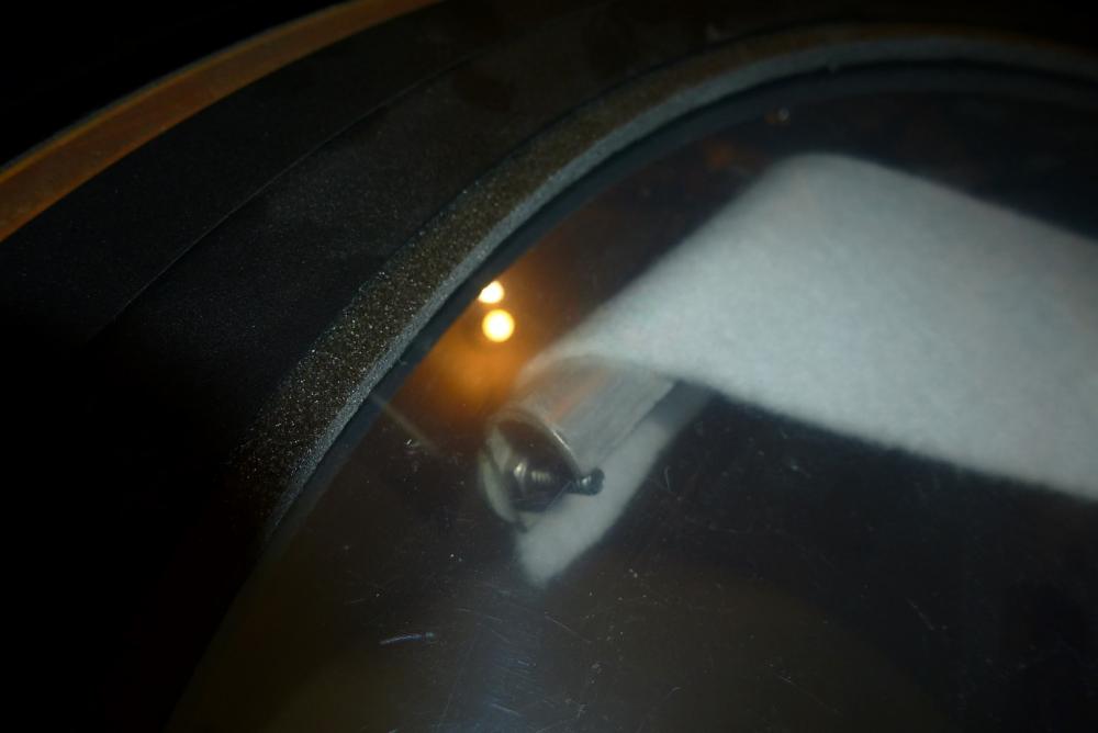 I was taking my Sunset Satin Flame bass drum apart today to clean it. The mute looks to be installed backwards but I'm not 100% on that because I don't have a photo of a factory install. I'm finding all kinds of weird stuff with this bass drum but for now I will stick to this one topic.