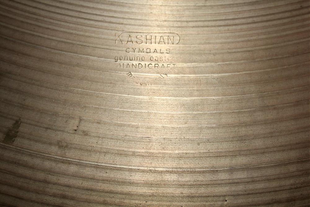 Thank you for the replies. Mine is engraved and very difficult to read. It says "Kashian" and has a line going from the top of the K that goes straight across the top of the word Kashian and loops down around the n. Below this it says "CYMBALS" (all caps), below that it says "genuine cast" with what looks like the the number 57 after the word cast, then the word "HANDICRAFT."(all caps), Below everything, "Made in Italy" is written in an upward curve, like a smile.