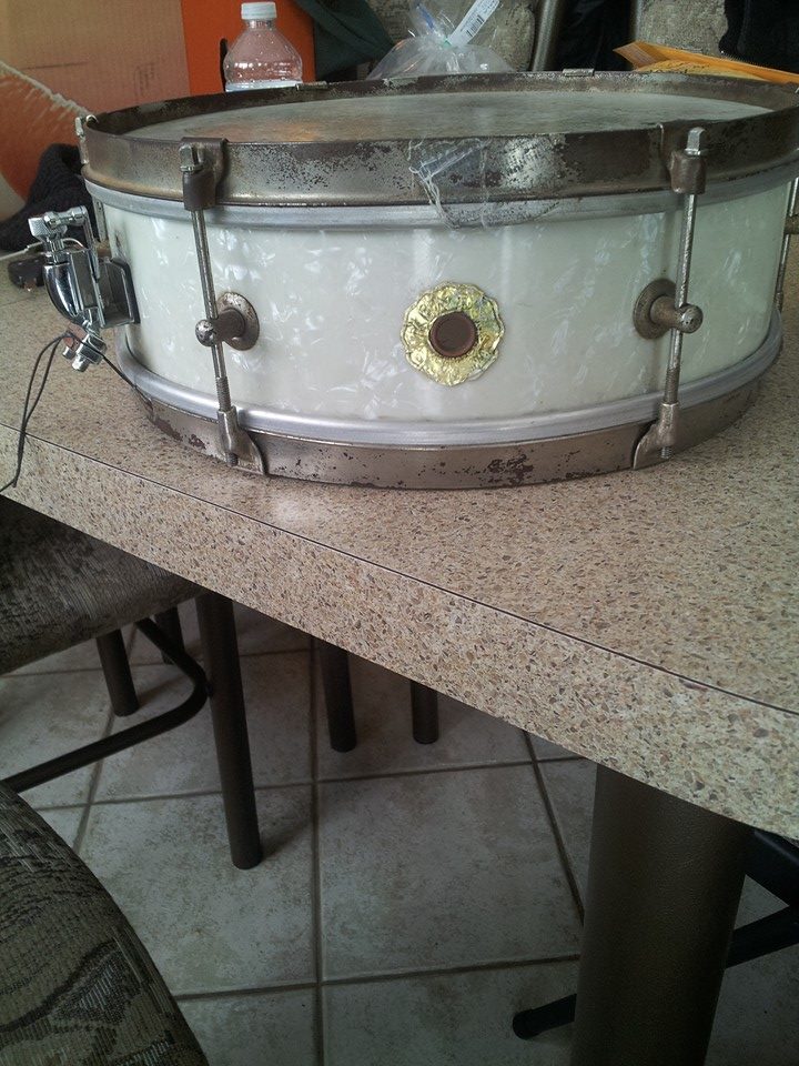 Picked up this little guy today..... sounds absolutely amazing! Any info would be great! From what I can tell, it's probably late 50's early 60's? It's a six lugger, single tension, and seems to be a solid shell? Looks like maple to me, but I could be wrong! Would love to know more about this! It sounds absolutely amazing despite the obvious cosmetic wear. Strainer is aftermarket, but with all the considered I'm very happy about my $60 purchase!