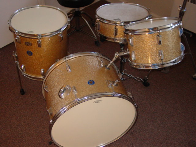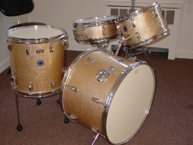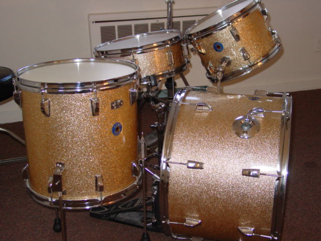 Just got my kent kit back after waiting a very long time to have the edges done, and have the kit restored!! and it was worth the wait!!The interiors were done,all needed hardware and rods replaced,new aquarian american vintage heads on them,these babies got the works from one of the best out there!!! And i must say,they sound great!!! nice jazz tones and resonance!!!By chance all the drums came out tuned to the key of G,go figure?? I was looking for a nice jazz kit,and thats what I got!!!20" bass-12" rack-14"floor tom-14"snare an 8 lugger too!! Nice champagne sparkle-what more could you ask for!!! I wanted to do justice to one of these kits to see the end result,and i am very happy!!and just by chance,alot of the drum shells are birdseye maple and curly maple that were finshed to perfection!!! I am attaching some photos,i hope you will enjoy them!!!