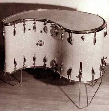 Found this pic of a unique kidney/comma shaped floor tom that has a calf-skin head which is supposed to have a pitch range of 1.5 octave which could be played. Dont know the make, just saw the cool pic.[IMG]http://i330.photobucket.com/albums/l407/olimpass/CommashapedCalfSkin15octaveII.jpg[/IMG]