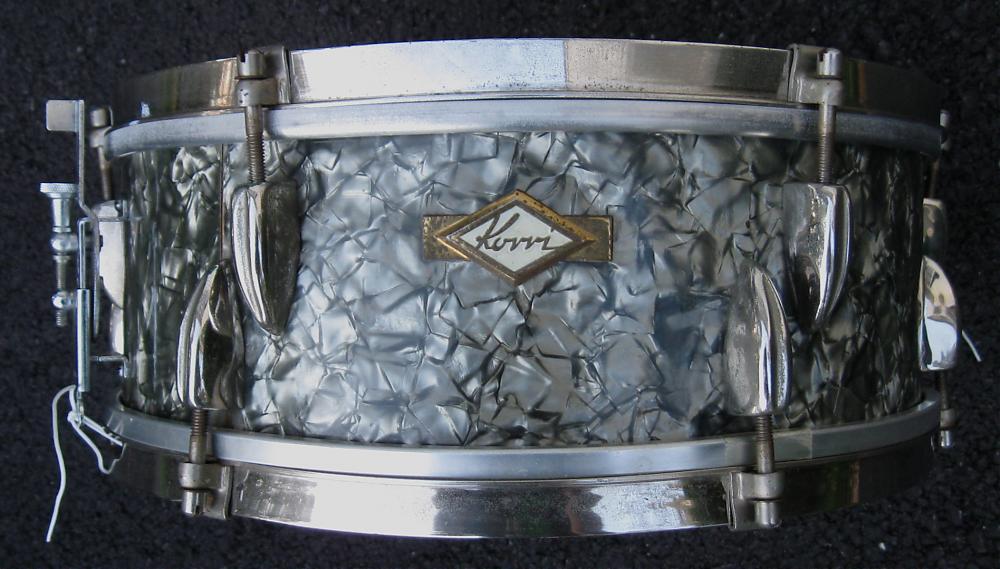 Korri was a German music company ,that both made and purchased their products. I think, they had keyboards,some string instruments, music stands,percussion---maybe even some music. For a while in the 40's and 50's,they contracted the Russelsheim drum manufacturer, Tromsa to badge stock drums for them, although in a joblot of old ,mostly marching drum parts ,I obtained from Germany,there were some bits of hardware with Korri cast right into them. This is a very nice example of the standard 6 lug Tromsa snare that was in production for about 25 years. This one , with its stick slayer rim and clipovers is likely a late 40's incarnation. The original throwoff was mounted with 2 screws and had a lateral cam action. They are very hard to find. I have just enough to rebuild the drums, that I have( i have 20 snaredrums built in the Tromsa factory) but if i see one I will let you know. Would you want to sell or trade it?