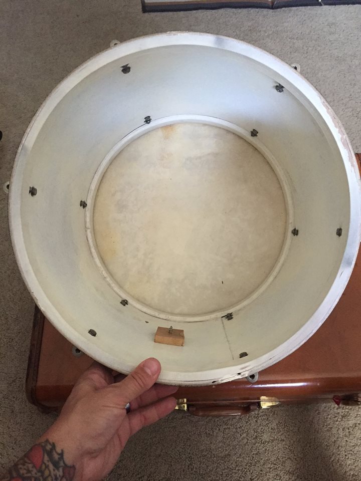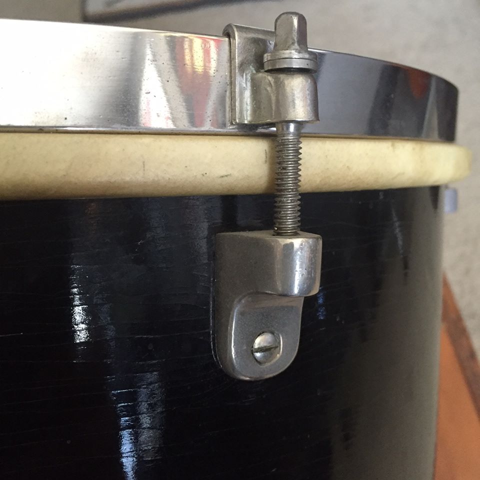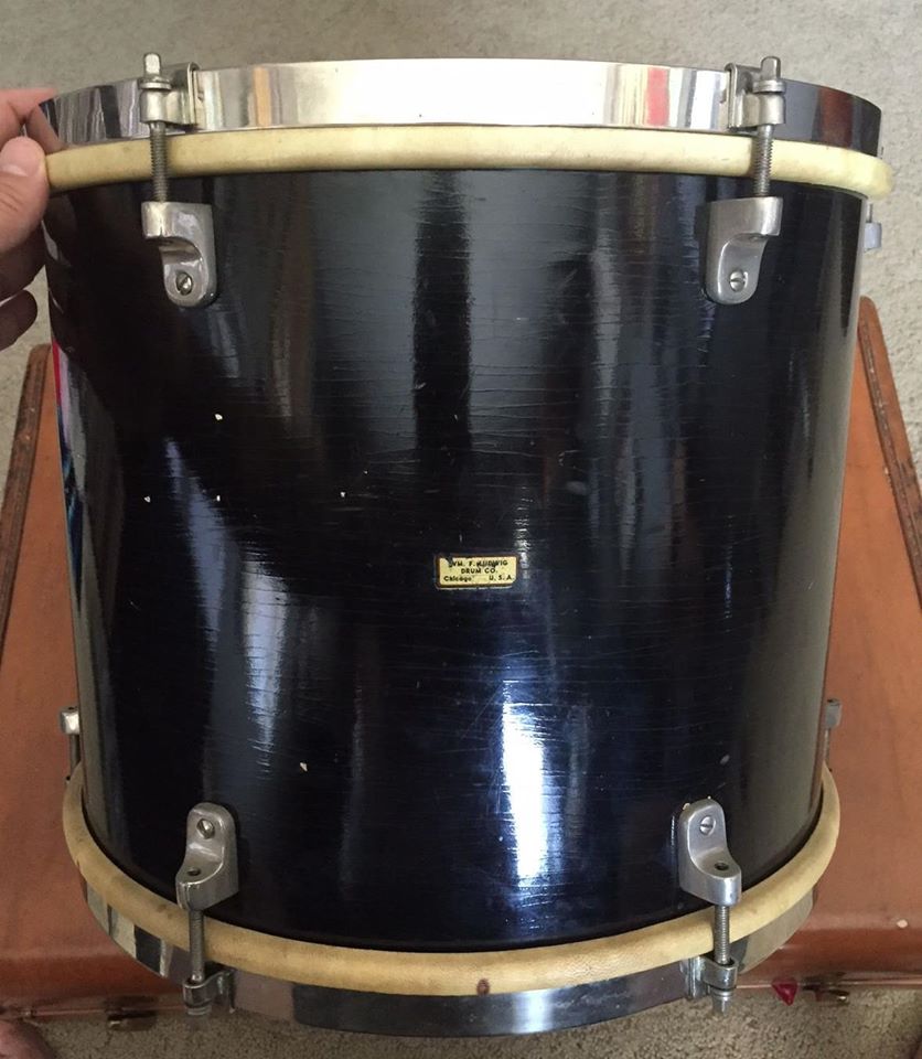 For sale: Late 30's/early 40's WFL 14x12" tom. May have been a field tom since there is a mount for a strap. I was using it as a floor tom on a cut-down snare stand, but found another WFL floor tom. This baby is all original, has a rare badge/decal, rare lugs and sounds great! Calf heads top and bottom. This thing is really clean and in fantastic shape for its age. Who wants it?