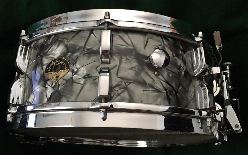 Very nice, all original condition. Strainer with bridges works smoothly. Has the original snares and tabs. Correct muffler knob works. Date stamp of Jan, 1955. Pretty clean...I haven't messed with it in 25 years. Just played it often on my home set. It's a very versatile snare...can be tuned up or down. Sturdy enough to gig with.