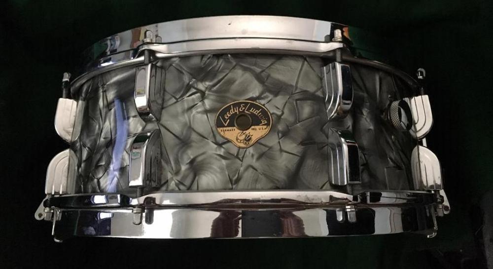 Beautiful 1955 Leedy and Ludwig Broadway in black diamond pearl with the harder to find chrome hardware. (Most of these have nickel) 5.5" x 14".