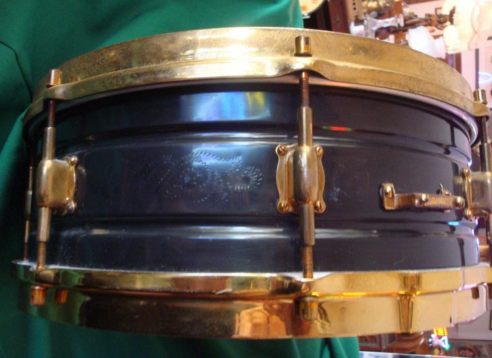 There's a Leedy Black Elite on the 'bay right now. Body's got to have been re-plated, right? But what about the knobby gold hardware? Looks to be in good shape but does the rehab work decrease the value of this otherwise pretty original and intact drum?