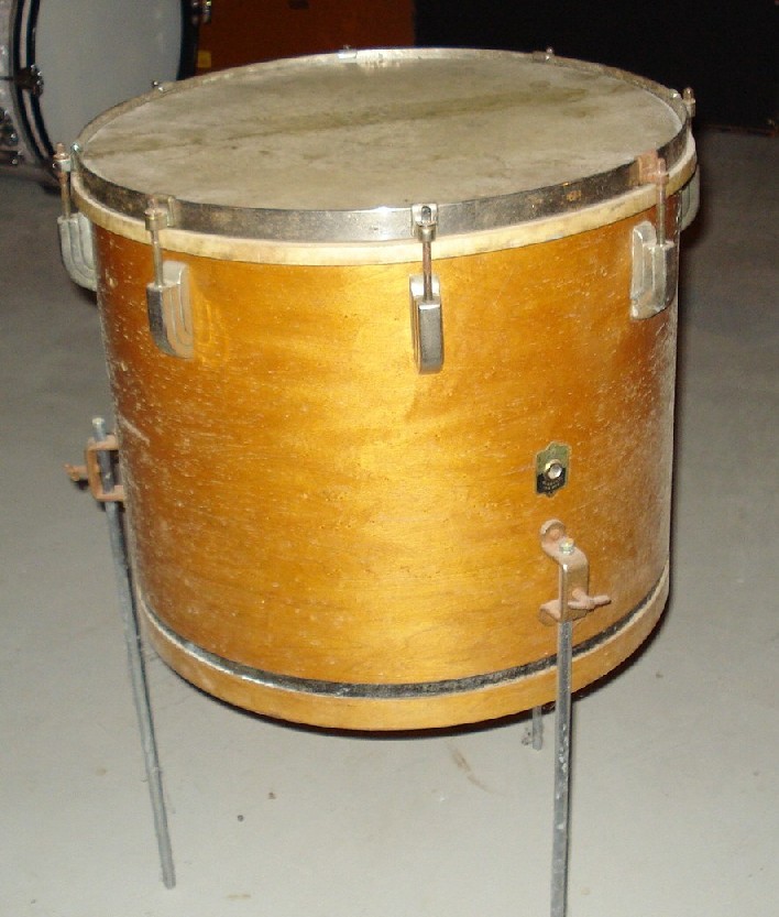 Original calfskin batter, but missing the tacked reso head. Natural finish. Original muffler. Legs don't look original.