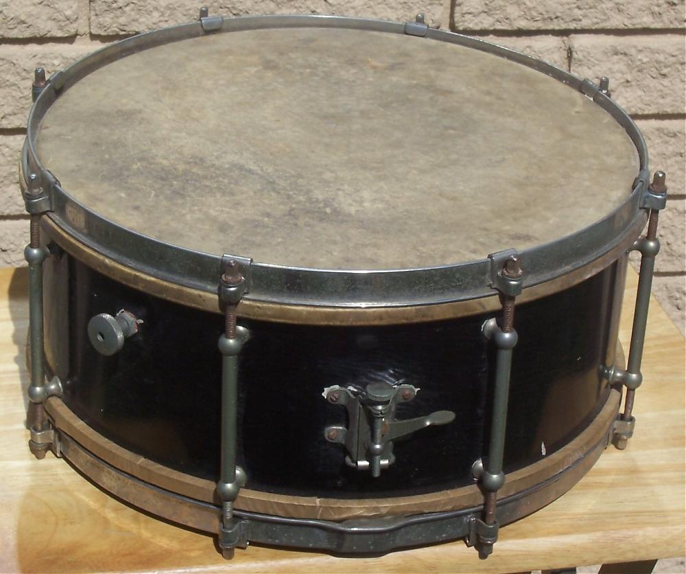 I recently picked up a vintage Leedy Reliance snare drum that, although having all its original components, needed repair work done to the shell itself (lifting issues)as well as the batter side wooden reinforcement ring, which had detached from the shell. The drum came in its original black lacquer finish, which was in pretty rough condition and the snare side head was severaly torn.