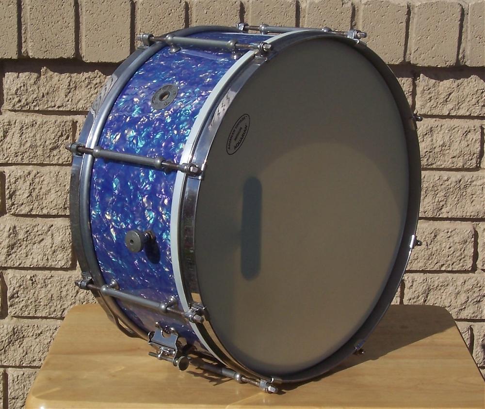 While working several other projects I happened to notice a Mediterranean Pearl wrap being offered by The Precision Drum Company. It reminded me somewhat of Ludwig's vintage Peacock Pearl wrap. I thought this particular drum might be a nice candidate for this particular wrap. In my opinion, these types of wraps seem to show better on shells featuring tube lugs.