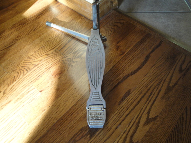 here are a few pix of a SHELLY MANN bass drum pedal.Maybe yours was made in North Korea or East Germany?