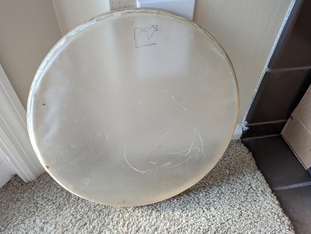 This is a (roughly) 1957 14" calf head from Ludwig. It came off a '57 Pioneer snare.