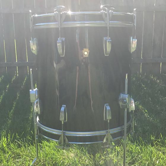 Up for sale is an excellent condition 60’s Ludwig in rewrapped black cortex. The wrap looks great on this kit and could pass as original. The original keystone badge is included with the kit it is however NOT ATTATCHED. The badge was not replaced after the wrap was completed and I acquired it from the owner and asked him to leave it off in case I wanted to refinish it to match a project. Hardware is in excellent condition missing muffler and tension rods. I’ll also include some 16 metal hoops with black inlay that came with the drum. And also t-rods and claws in case you’d like to use it as a small bas drum. No extra holes have been put in the shell! Asking $200 obo plus shipping for this clean 16x16. Local pickup in Dayton Ohio is welcomed.