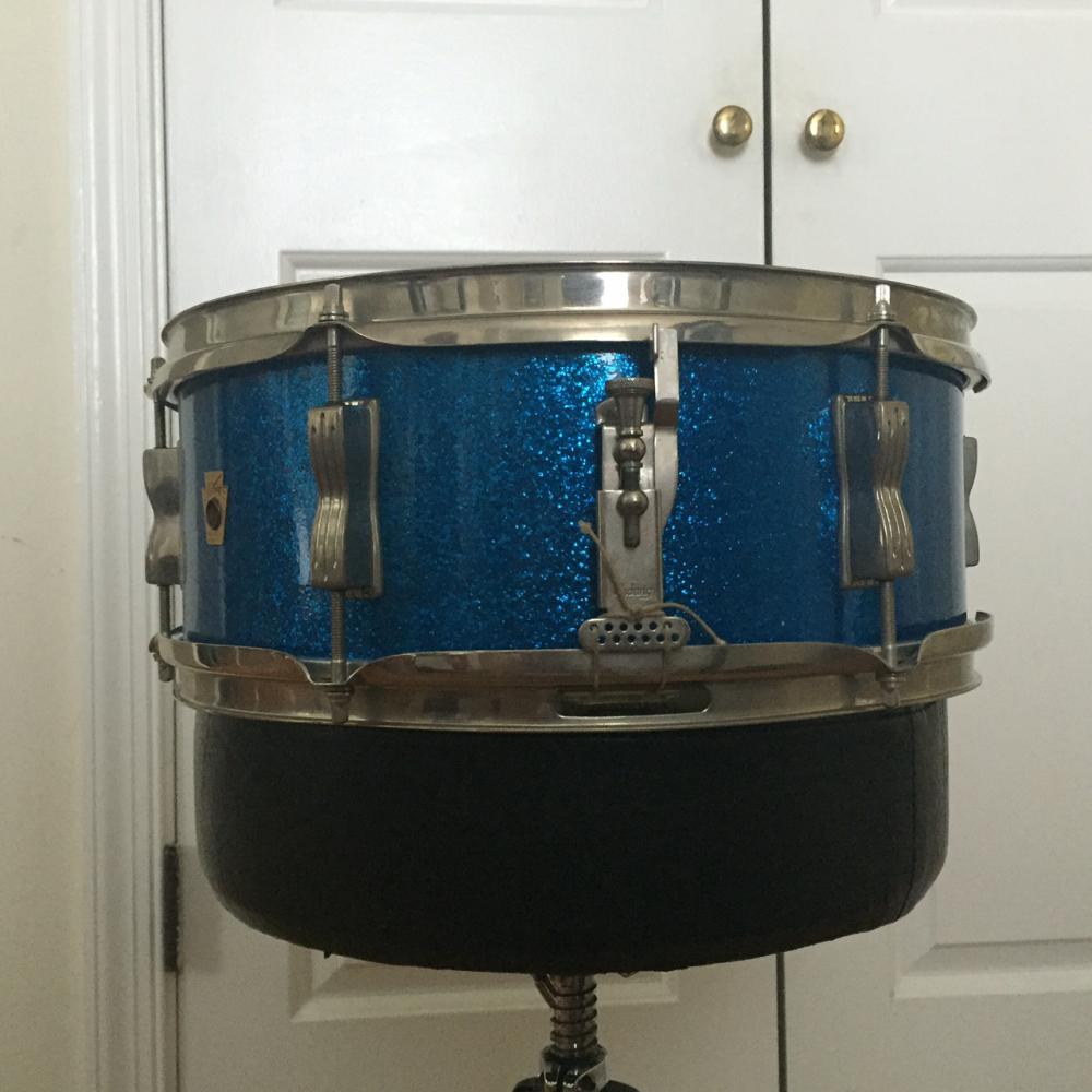 Offering up a beautiful 1960s Ludwig Pioneer model snare drum. Blue sparkle with nickel hardware, white interior, serial number 265XXX, and original Pat. Pend. snare wires -- a very clean example of a classic vintage drum. $165 plus shipping. Paypal preferred.