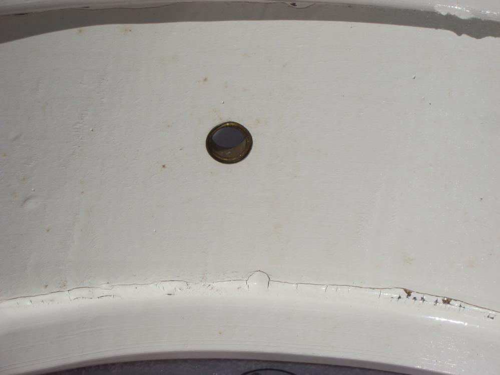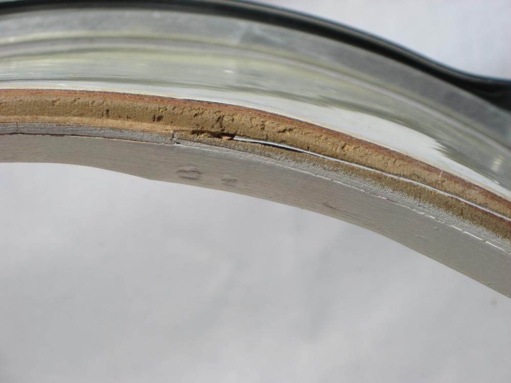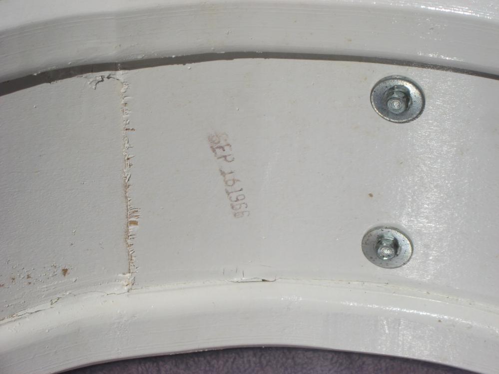 The shell is 3-ply Mahogany/Poplar/Mahogany with solid maple reinforcement hoops. However, looking closely, the shell looks more like Mahogany/Poplar/Maple. Hard to tell what Ludwig may have used! The original RESA-COTE paint still looks very white, with some typical flaking from age. The WMP wrap has only SLIGHTLY faded. Definitely not "yellowed", but more "mellowed". Looks beautiful! Yes, the wrap is lapped into the seam! There is a very slight "pucker" at the seam, directly above the lug, which you can see in one of the pictures. Really not bad at all, but needs to be mentioned.
