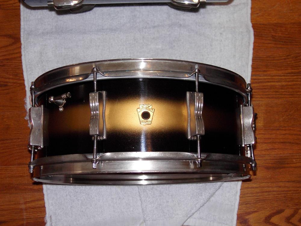 Ludwig 5x14" Black Gold Duco Jazzfestival snare drum. 1966 model. white interior. nickel hardware. I have the entire clubdate kit 14x22" bass, 9x13" mounted tom 14x14" floor tom.