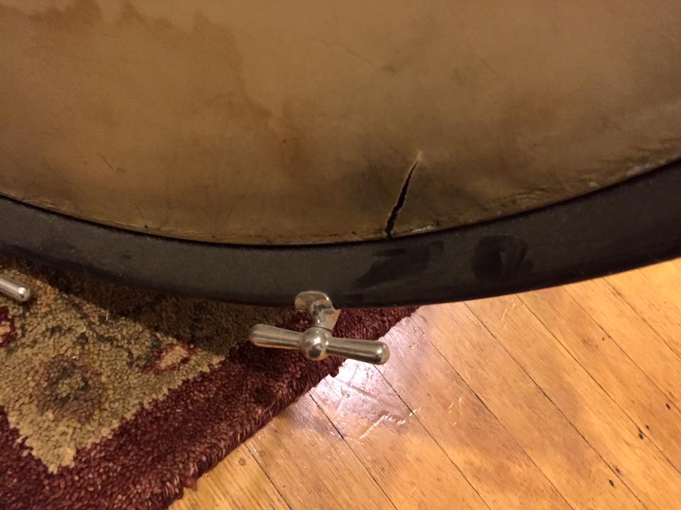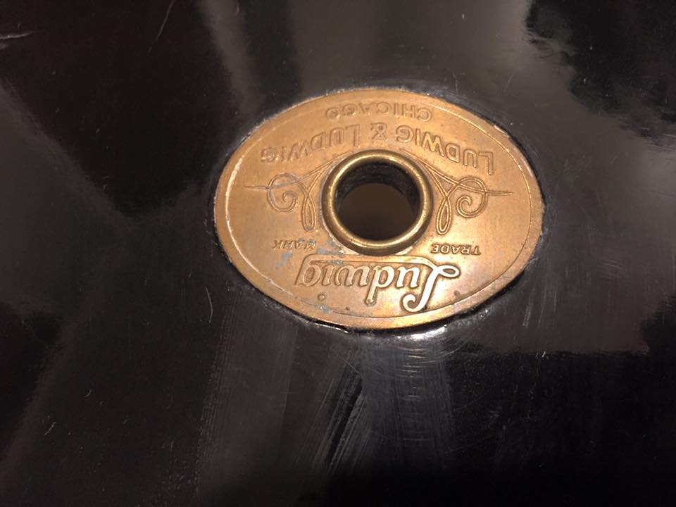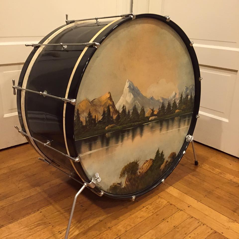 28x12 Ludwig & Ludwig Bass Drum. This dates to somewhere in the 1920s. Beautiful painted calfskin head, which was original to the drum. Also comes with original batter head as well (small tear in the bottom). The drum has been professionally repainted in black nitro, and is complete minus one center lug on the side. This originally was fitted with lights as is common from that time period, but the lights have since been removed. Also comes with clamp-on spurs. Asking price is $399, but feel free to make a reasonable offer. Shipping will be a beast on this, but I'd be happy to split costs. Please PM me if you're interested and/or have questions. Located in Pittsburgh. SOLD