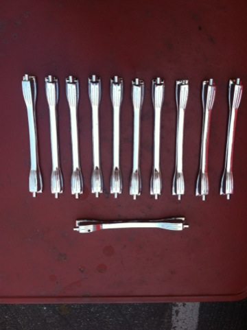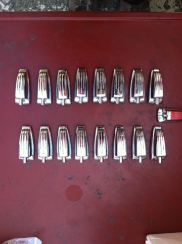 1: Set of 16 Ludwig classic lugs from a 70's b/o badge floor tom. Most are in good shape, but three of them are a little beat up. (And 1 same era/size lug but with a shorter threaded sleeve sticking out that the tension rod screws into.) I think all of the mounting screws and washers are there as well. $40