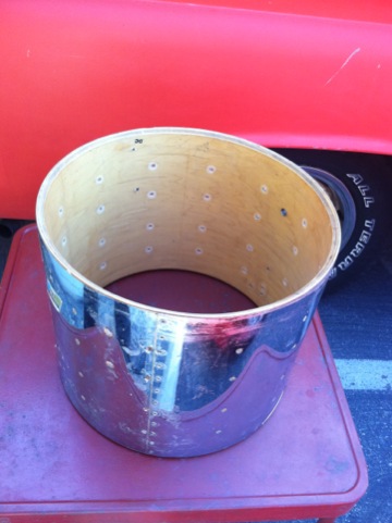 3: 12x15 COW b/o badge Ludwig marching snare shell...there are at least two extra holes, but I don't know how many as it didn't have any hardware except for lugs when I got it. The chrome still shines, but is pretty beat up in places. Bearing edges have some wear but nothing that should affect playability. $15