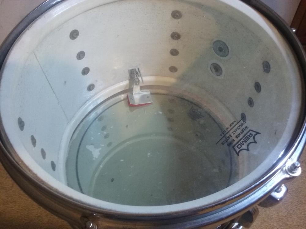 9x13 tom, has at least one incorrect hoop. some lug mounting screws are missing or replaced with incorrect screws. Mount is a Pearl but I need to remove it to see if the holes were enlarged, they dont appear to be with the mount in place.