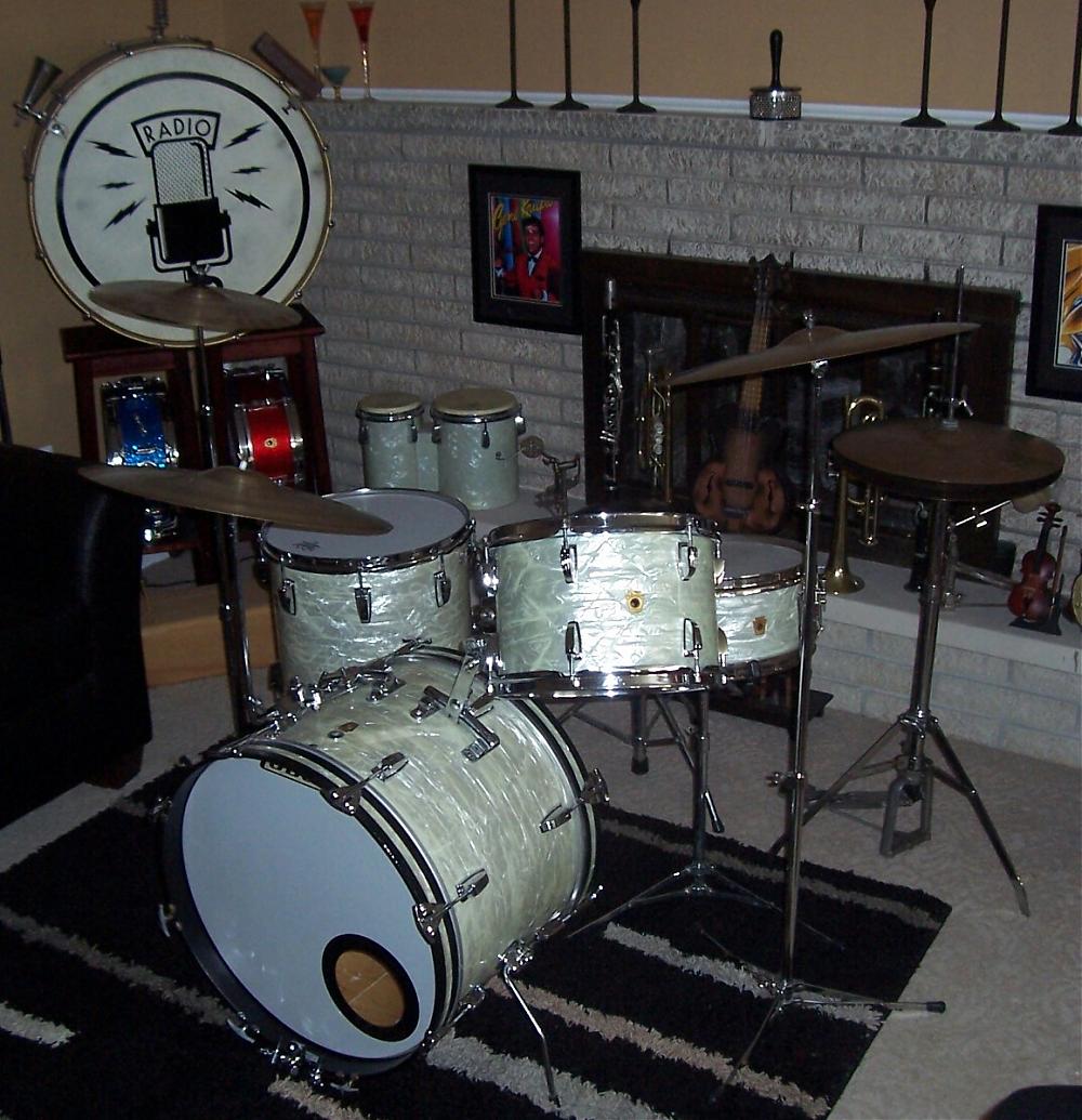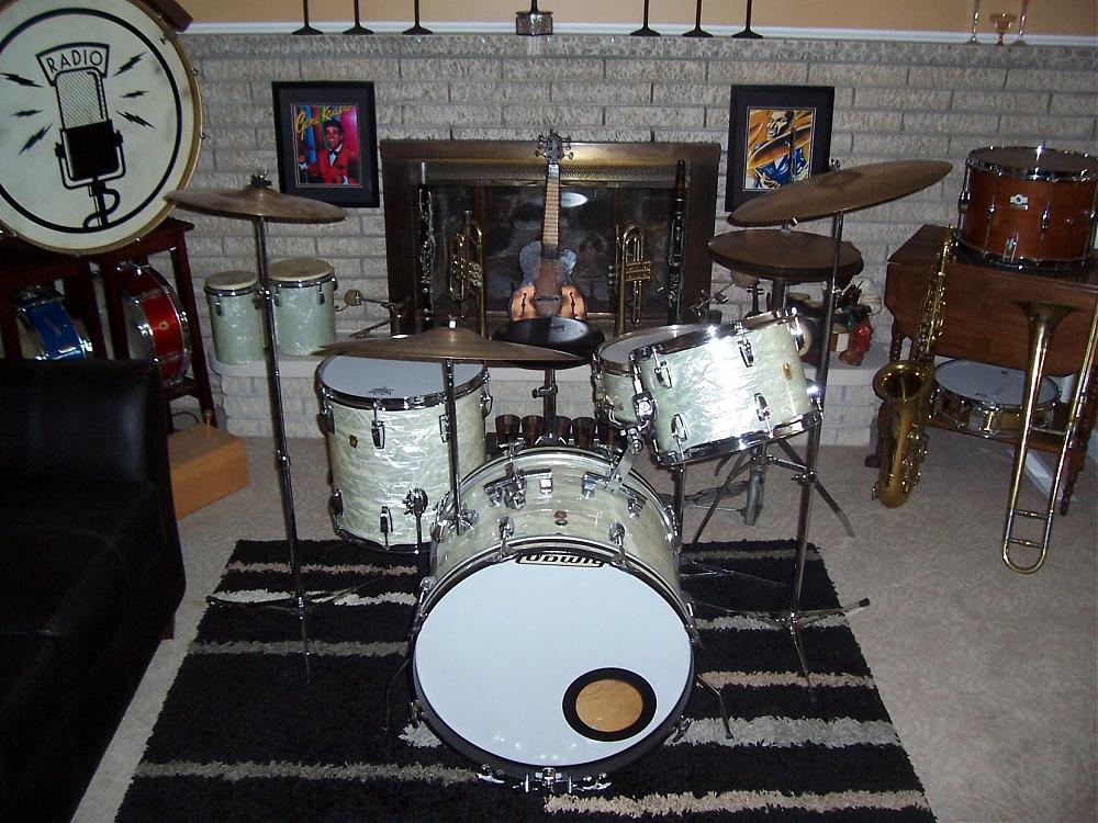 OK...so, some years ago you were fortunate enough to purchase a 1968 Ludwig WMP Downbeat kit (20/12/14) at a more than reasonable price. Except for some surface rust on the rims of the toms, it's in really clean condition, both functionally and cosmetically. The prior owner, a jazz drummer, had an extra Ludwig rail consolette mounted on the bass drum so that, when desired, the kit could be played with two rack toms. Other than two small holes located vertically above the keystone badge on the bass drum shell, which are covered (one with a Ludwig metal washer), there are no extra holes in any of the shells and the original WMP wrap has faded evenly on all three pieces.