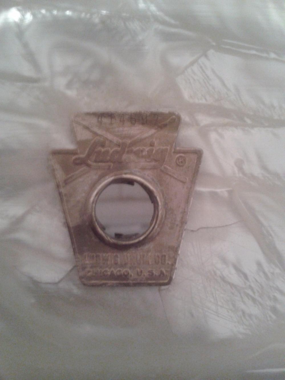 The throw-off tension knob is modern P-84 Ludwig, but the rest of the throw-off is original, as is the butt plate and all interior/exterior screws for both..I also have the original tension knob that i'll include with drum..The small screw that hooks to the throw-off lever is what's been cracked in half and is long gone, so it doesn't catch to lift up anymore.. Original baseball bat muffler works perfectly..Modern Ludwig snare wires and Ludwig nylon snare string..