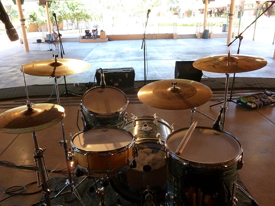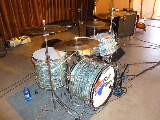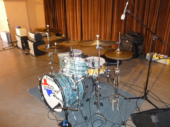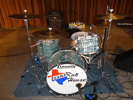 This is the Ludwig kit I have in the for sale section all miked up and ready for a show at Sunset Station in San Antonio. The soundman was hired from GC and he loved the kit, he said it sounded great and he thought the finish was cool, btw, he's also a drummer. Cool1