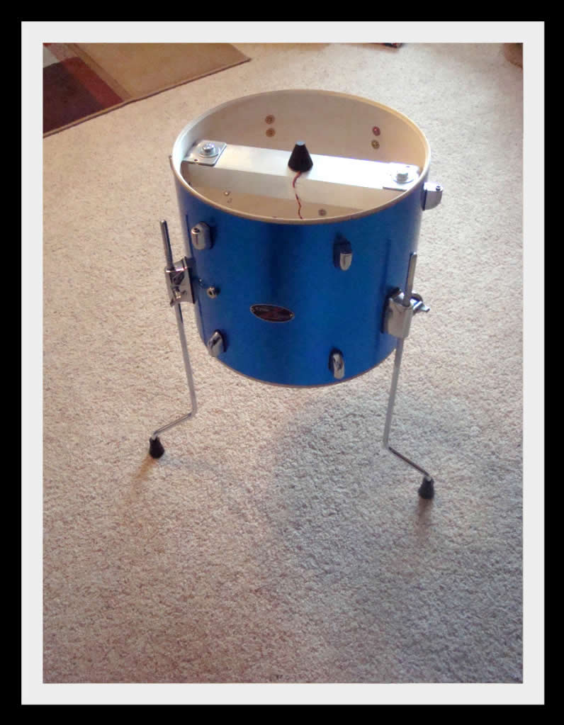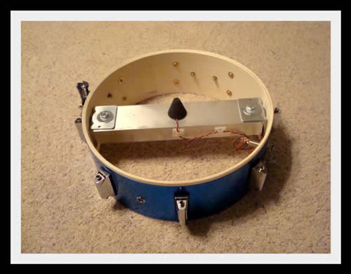 He basically reproduced the insides from a vdrum and placed them inside an acoustic drum. Note the cone on top.