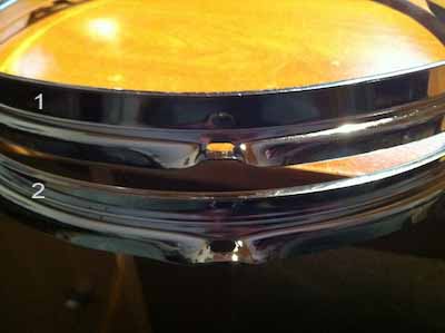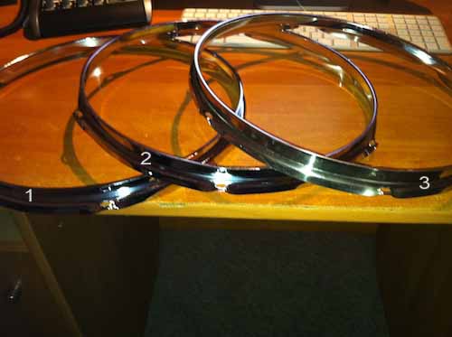 Hoop 1 and 2 were on the drum when i bought it. They both look the same to me, but one of them is a little heavier though. Hoop number 3 i still had in the cupboard, and it was said to be original 1970s Luddy when i got it. looks the same as well..... Hmmmm