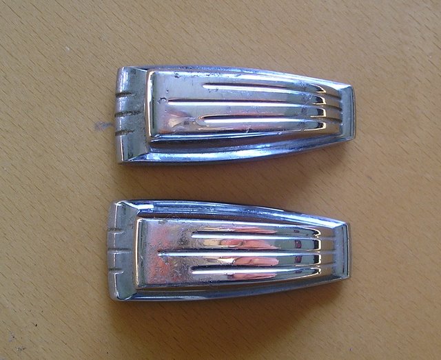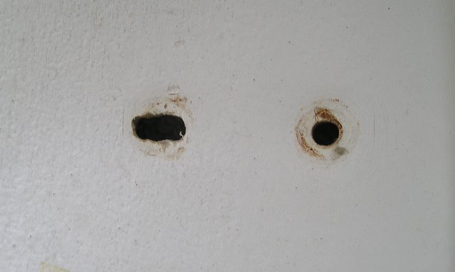 Anyway, I've stripped and cleaned the floor tom which is in pretty reasonable condition but I noticed that the lugs were of two slightly different appearances on the inside. Now I've stripped the BD and have discovered the same thing only with the BD one of each of the lug hole pairs in the shell have been enlarged as if these lugs didn't fit at some point. They seem to be the correct type of lug for the drum and the outline left in the wrap matches up perfectly with these lugs.