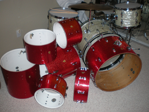 I am trying to clarify my knowledge of woods used by Ludwig during their Transition and Per-Serial days. I've seen toms and bass drums from both eras with obvious African Mahogany unfinished interiors. Recently, however, I've seen two Superclassic sets from 1962 with these interiors: