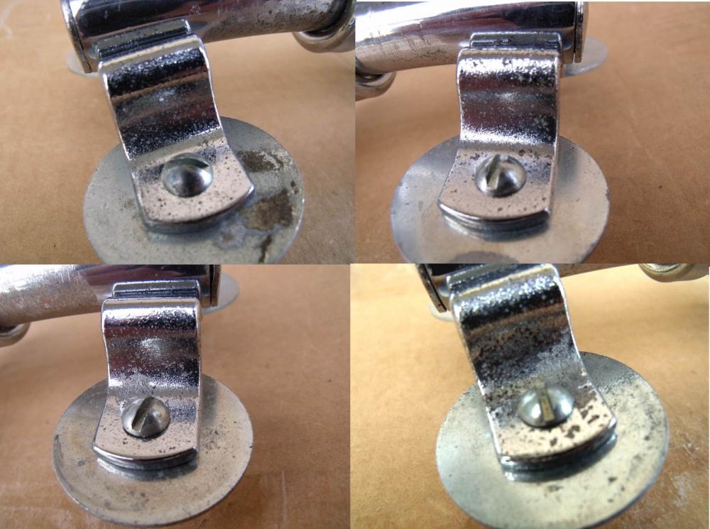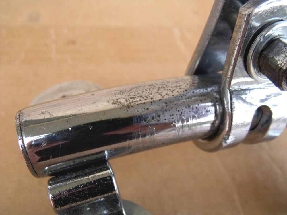 She's well used as you can see from the pics. Scratches, scuffs, pitting on the chrome. Chrome has peeled around Ludwig logo and on the mounting brackets. Metal ware around L-arm Holes. I have tested it and it does work.