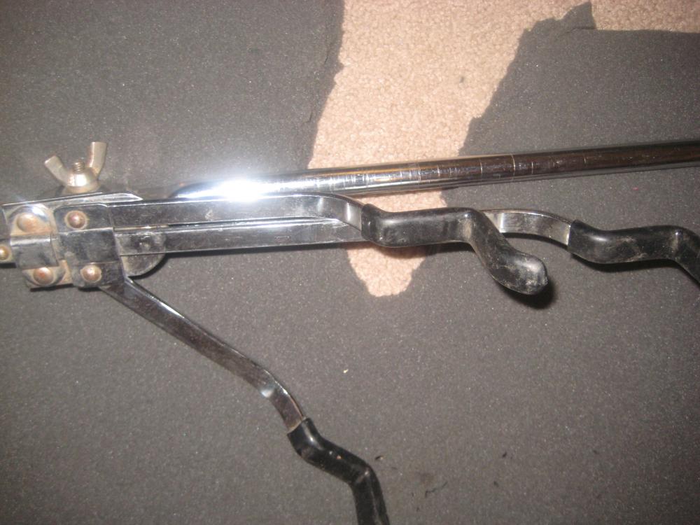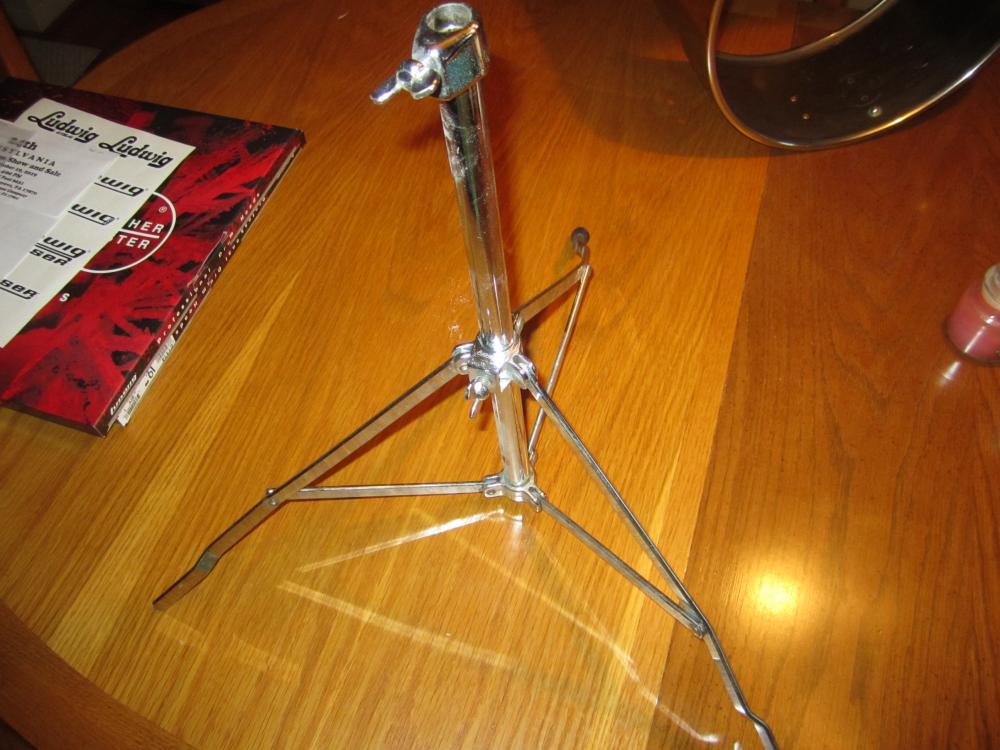 Thanks for the reply, vibes. To be honest, I don't really know the difference. From some similar stands I've seen, I think it would not have the plastic T handle, but a plain wing nut and a keystone shaped center plate where the 3 arms of the basket attach with the Ludwig logo??? Don't have enough Luddy experience yet as my recent acquisition of Luddy gear is my first. I'll trust your knowledge. D.