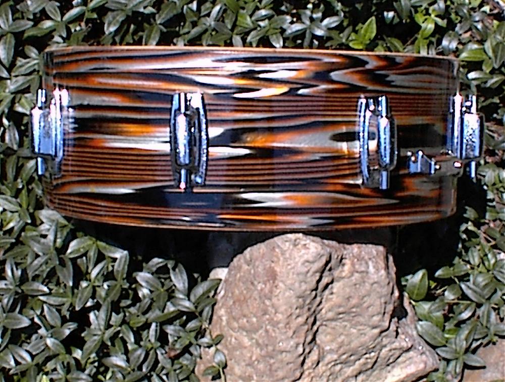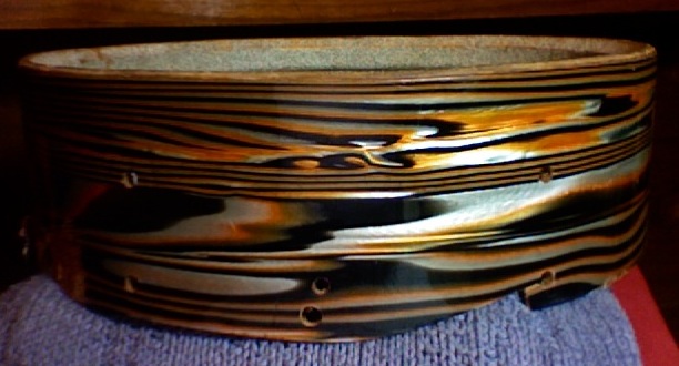 I have this '71 Ludwig Standard snare in a Strata finish - I'm 99% sure it's a Gold Strata wrap - (that's what a fellow at Ludwig initially told me when I described it and sent this first picture). After looking around at a lot of Strata finishes, I feel that it is the Gold. Depending on the lighting, it can be perceived as a Bronze version, maybe. [see my Drum Image Gallery post]