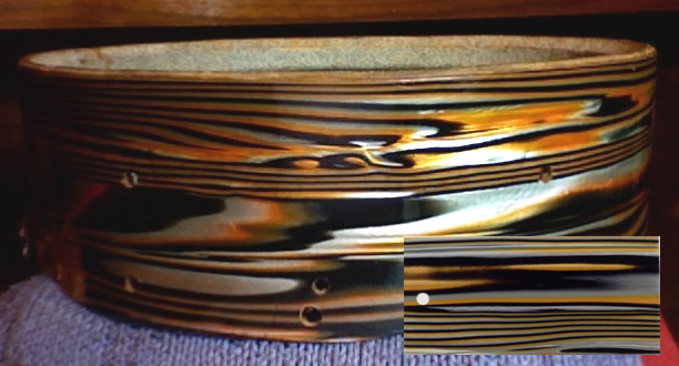 The 2nd is the same snare finished, restored to how it came to me, indoor pic