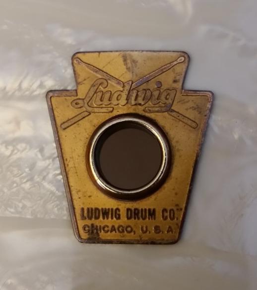The first obvious point of interest was that although all three drums have been together as a set, presumably from the beginning, the interior of both toms is painted white and the bass drum interior is clear. The pre serial badge places the toms from around 1961 -1963. The clear bass drum with the pre serial badge seems to place it around 1960. But to add to the confusion the pre serial badges differ. The picture on the left shows the badge that from one of the toms. The other tom badge is identical. Its very brassy looking and seems to have paint on the lettering. The bass drum badge on the right seems to be more bronze in color and with no paint. I recall reading there was more than one version of this badge. Can anyone confirm that?