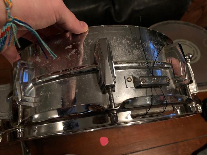 • 1959 Rogers Holiday 5x14 snare drum in blue sparkle. Serial number #13382. Large double sided bread and butter lugs. Part of my kit that was split up before I purchased it. Bring the snare home!