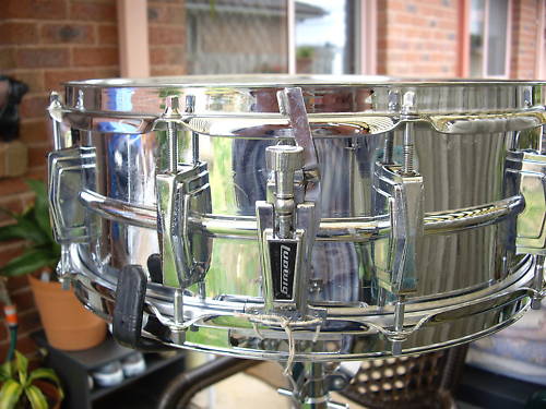 THIS IS A 10 LUG 14 X 5INCH DRUM .HAS THE ORIGINAL ROUND MUFFLER , HAS NEW HEADS TOP AND BOTTOM, AND WHAT APEARS TO BE A NEW SET OF AFTER MARKET SNARE WIRES . THE DRUM ALSO COMES COMPLETE WITH A P85 STRAINER WHICH WAS FITTED TO THE 1969 SUPRAS , ALTHOUGH AT SOME STAGE SOME IDIOT REPLACED THE STRAINER WITH A NO ORIGINAL ÁND LEFT A SMALL 1/8TH OF AN INCH HOLE , WHICH AT SOME POINT WAS PROFESSIONALLY METAL REPAIRED , YOU CAN HARDLY NOTICE IT HAS IT IS HIDDEN BEHIND THE P 85 STRAINER